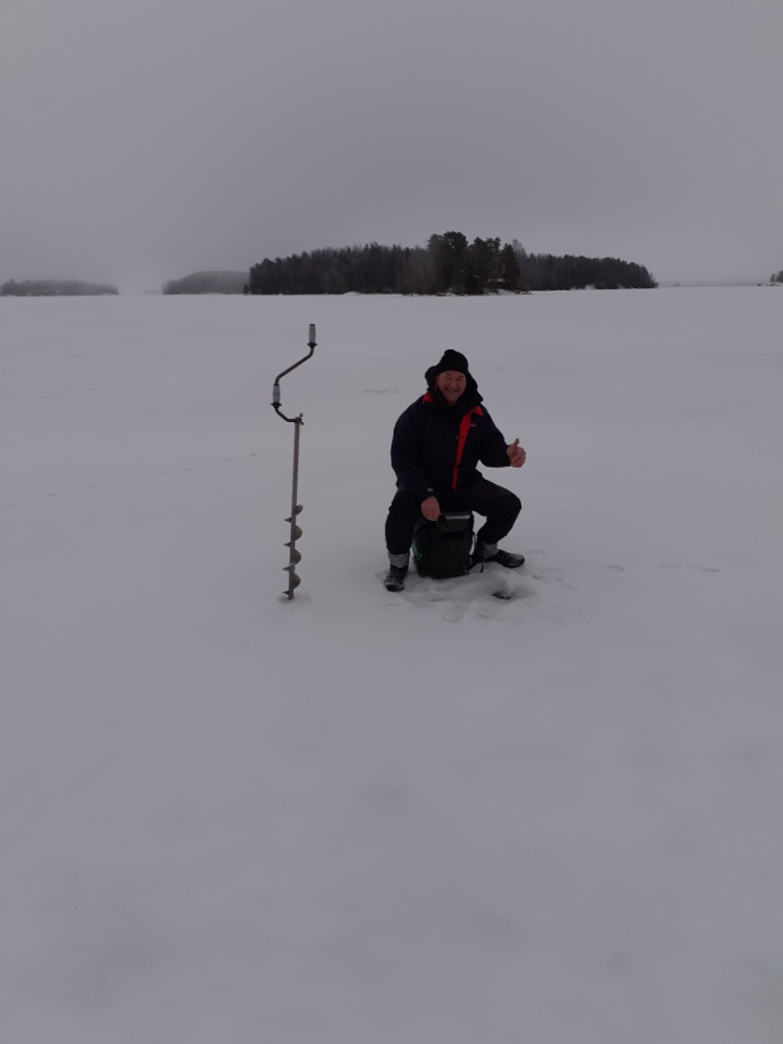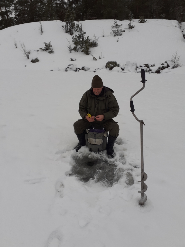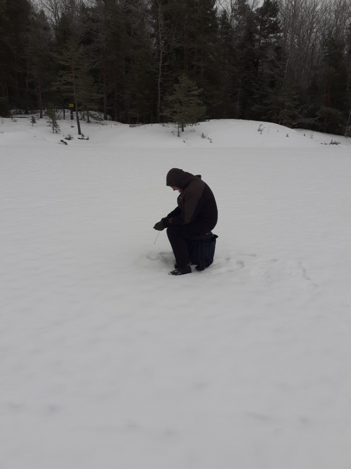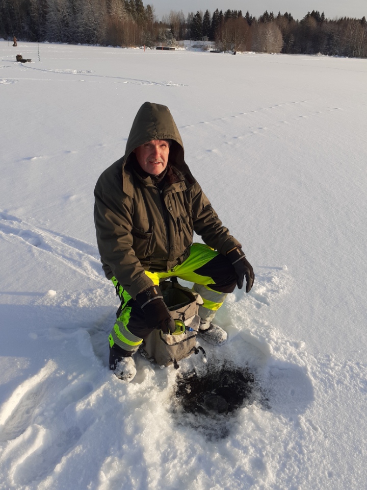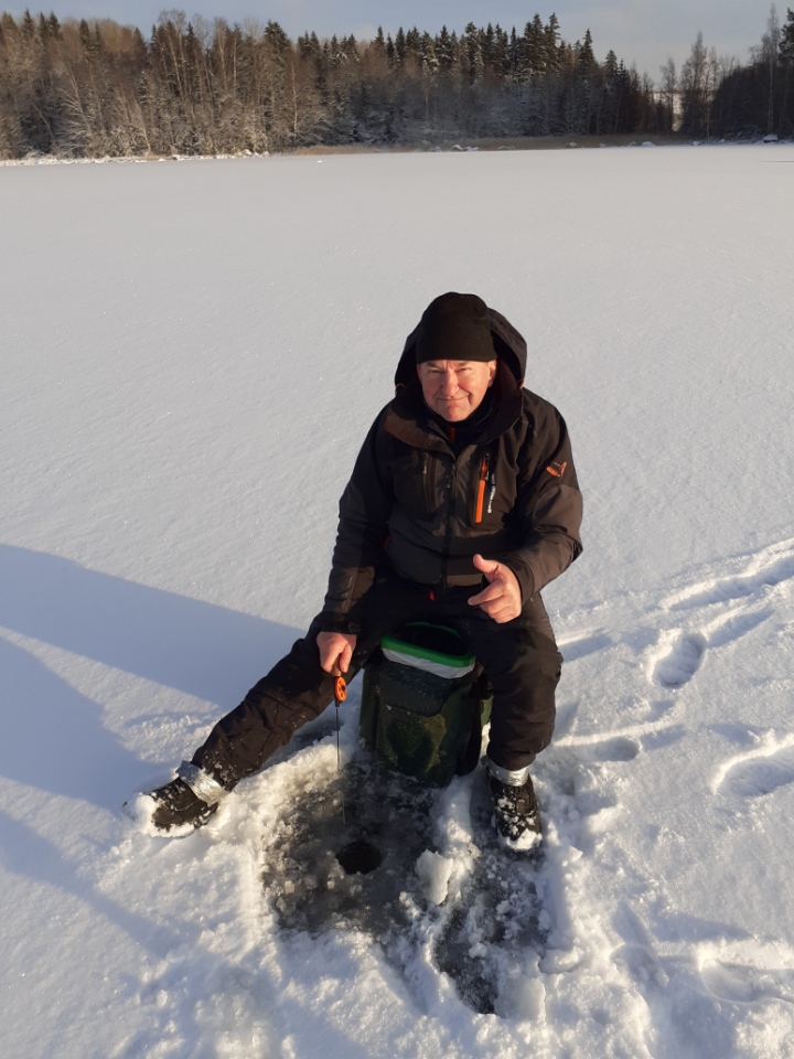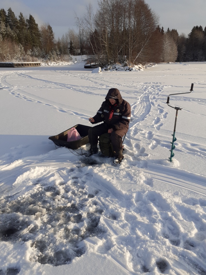 Pappilanniemi klo 9 – 12.30. Jäätä 29 cm, pakkasta – 5 astetta. 18 pilkkijää.