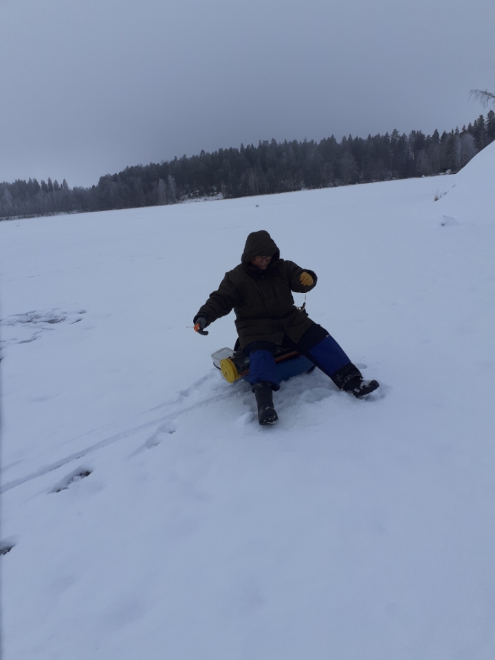 -13 pakkasta, jäätä 42 cm, lunta 20 cm vesi välissä toisin paikoin.