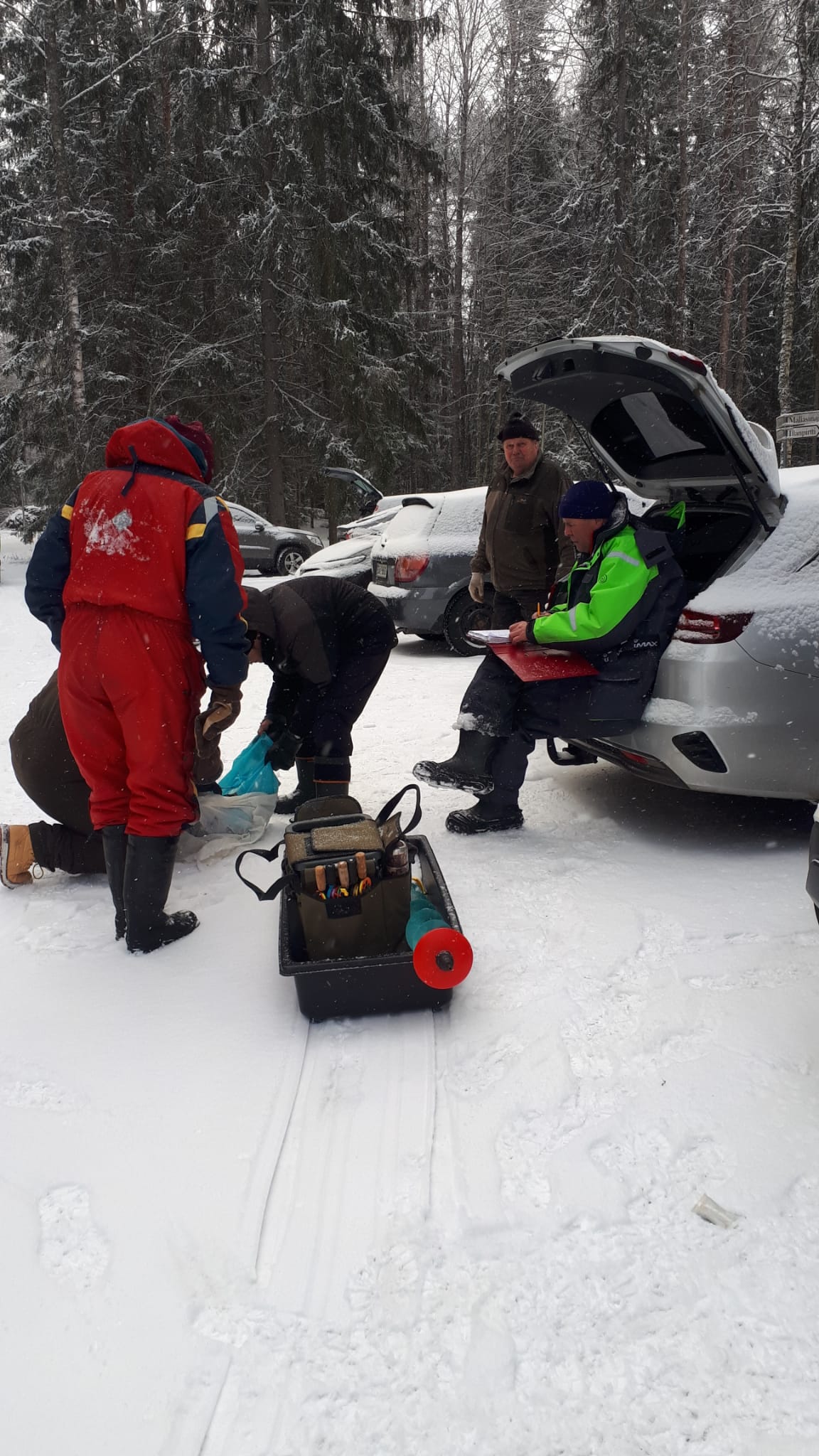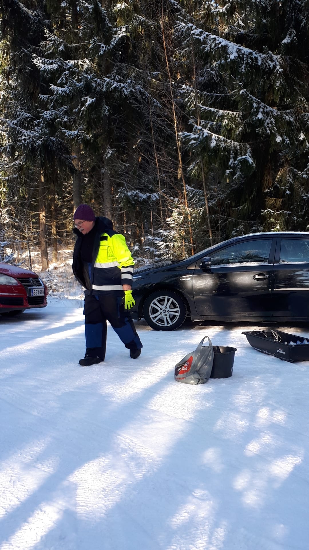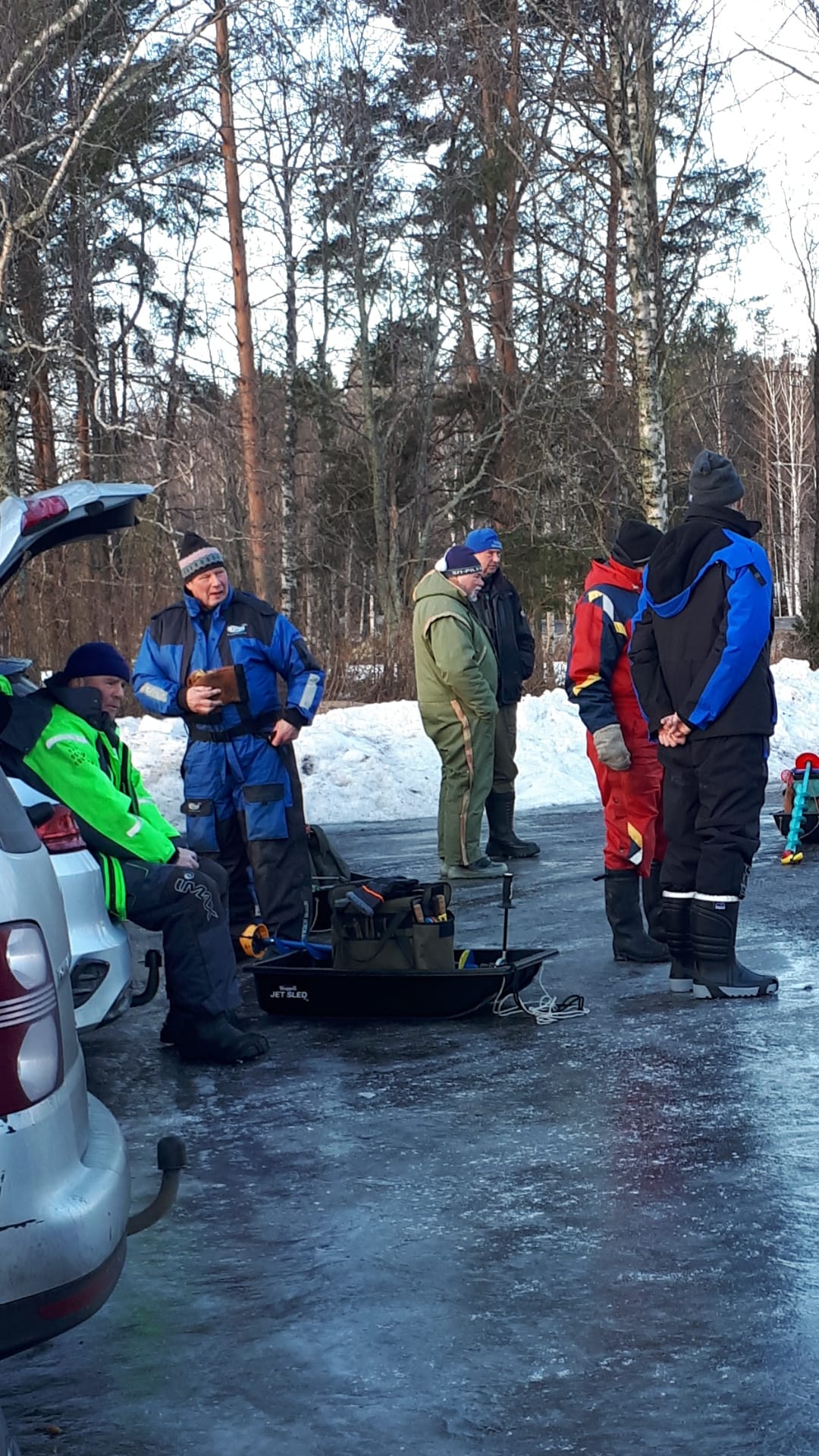 -13 pakkasta, jäätä 42 cm, lunta 20 cm vesi välissä toisin paikoin.