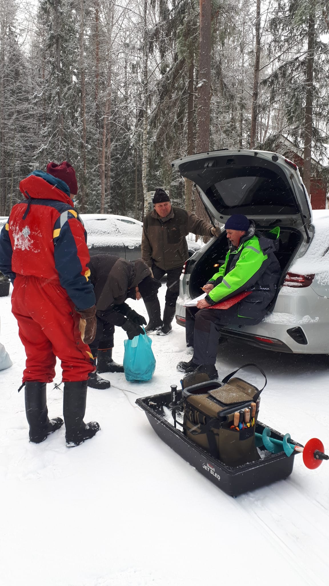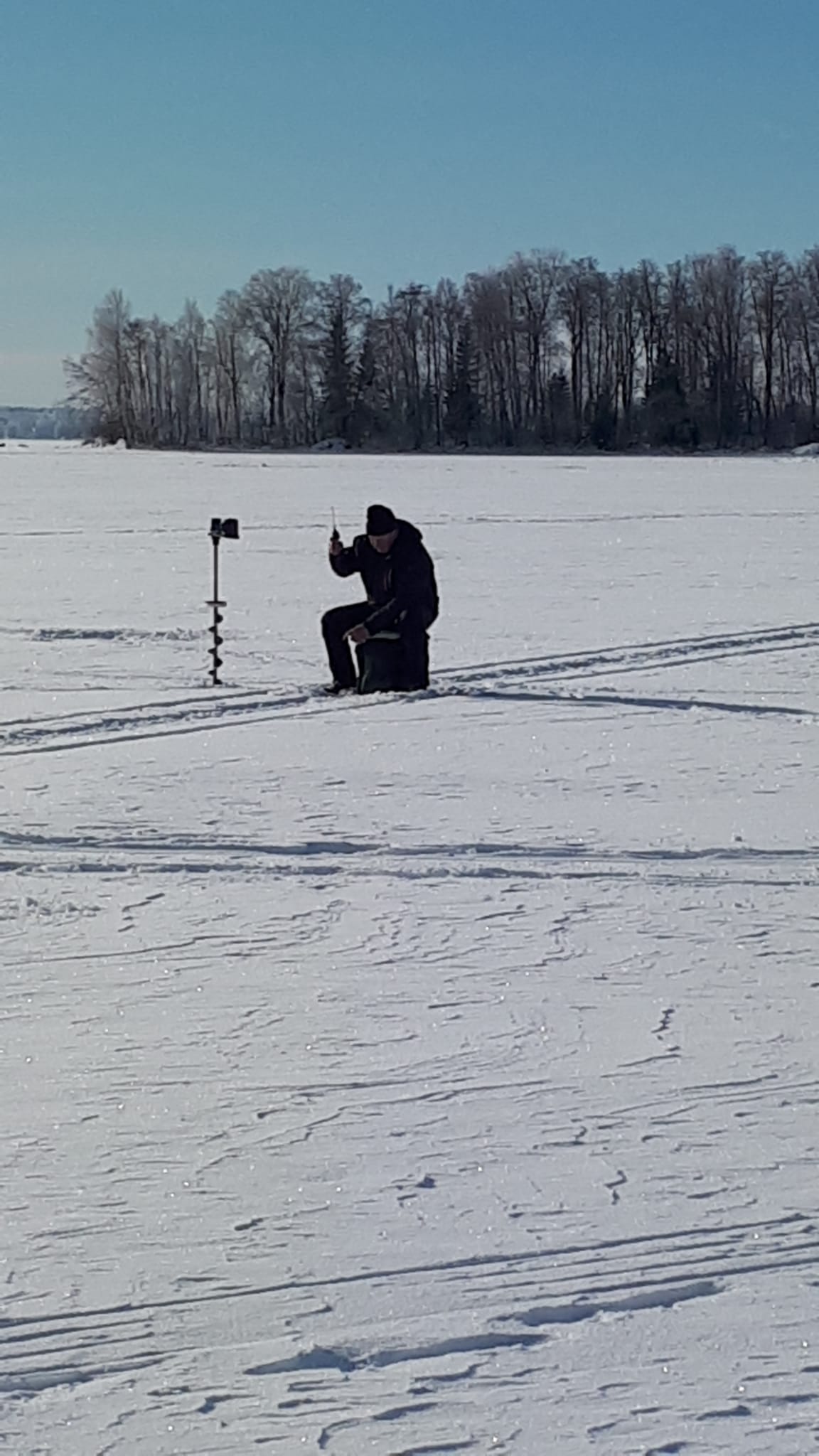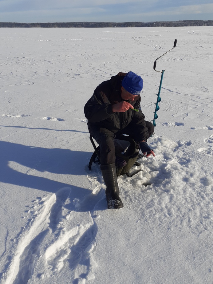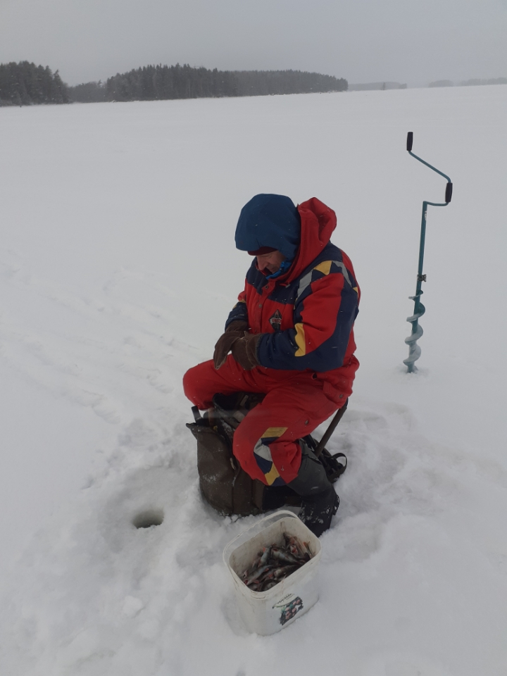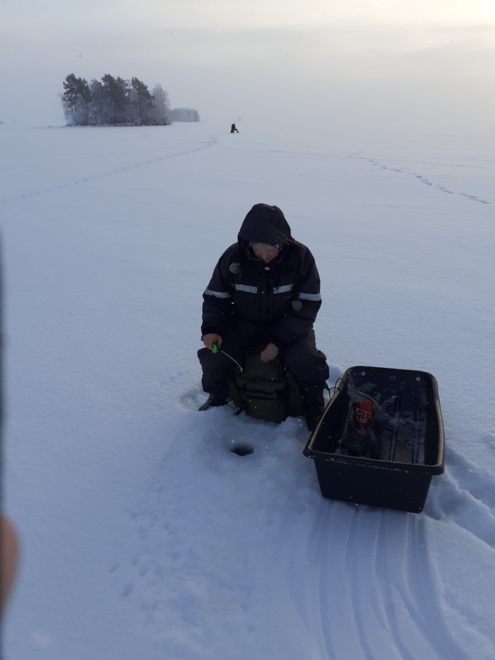Pappilanniemi klo 9 – 12.30. Jäätä 29 cm, pakkasta – 5 astetta. 18 pilkkijää.