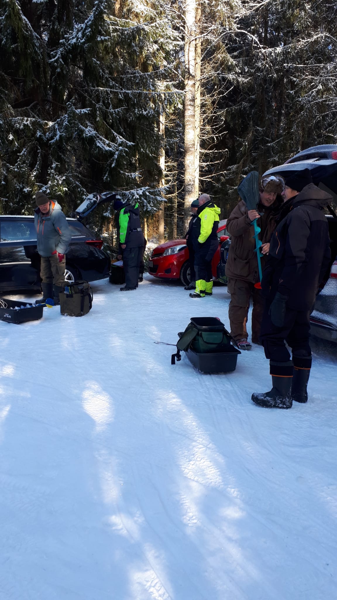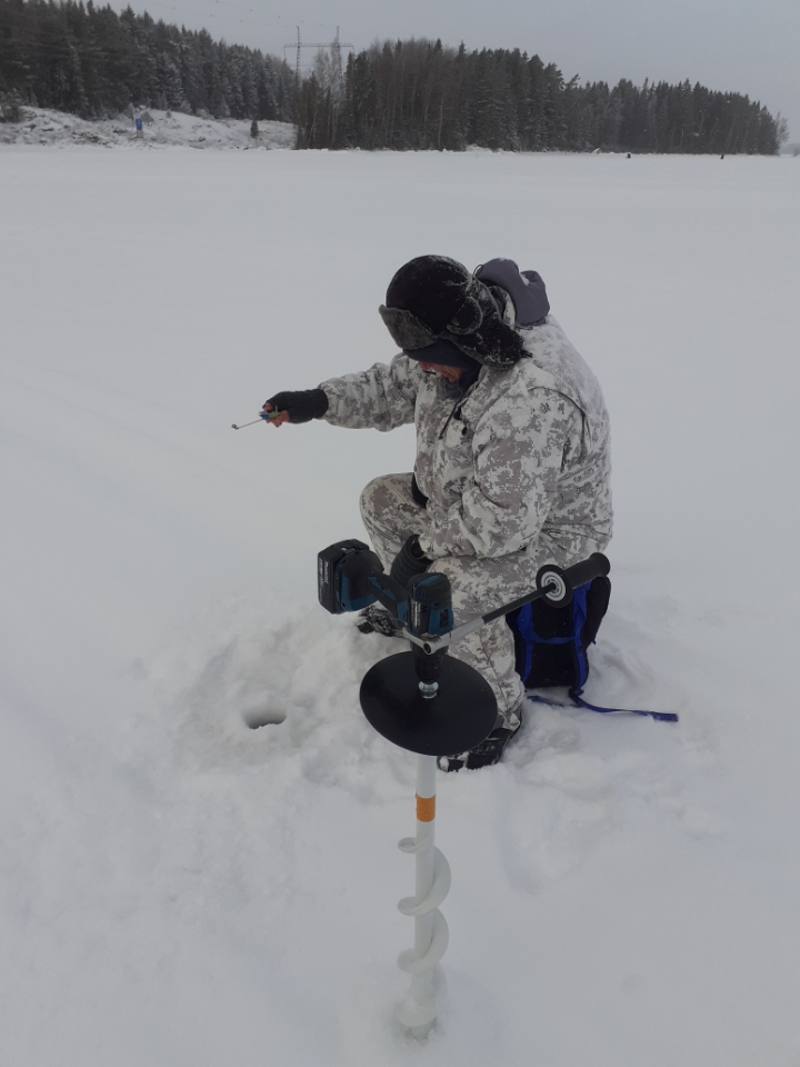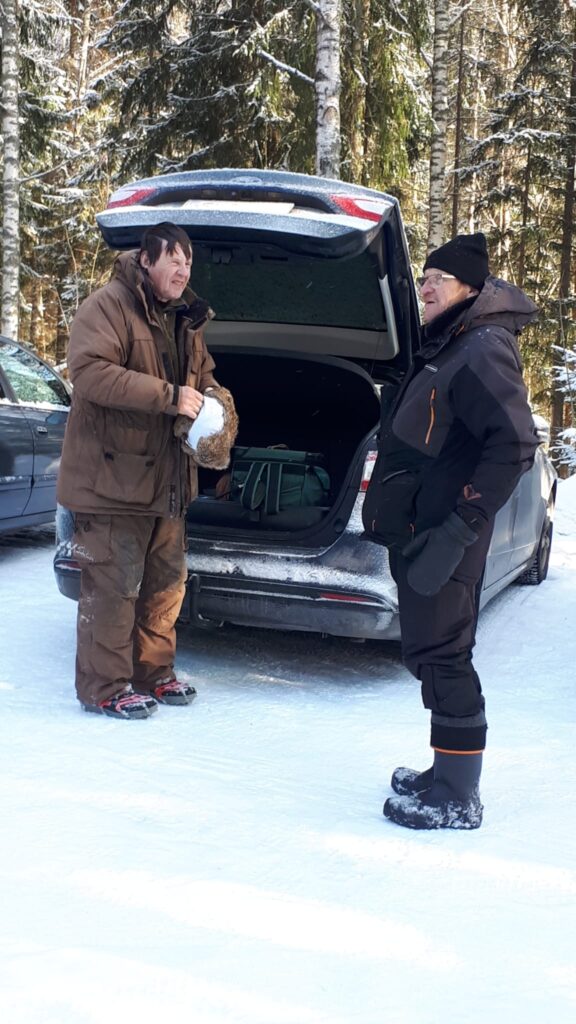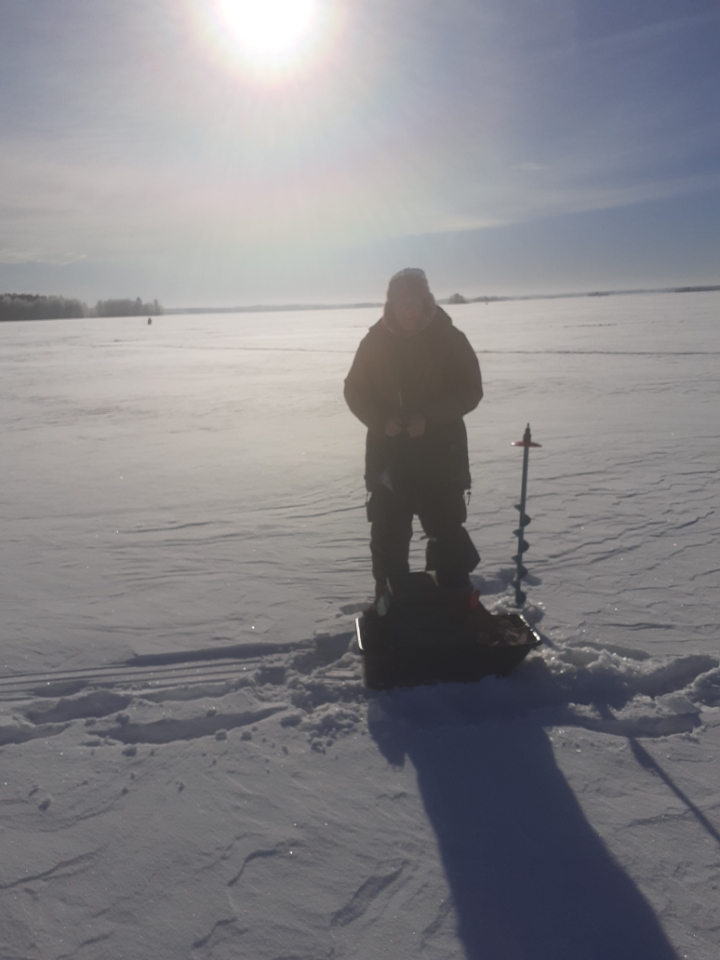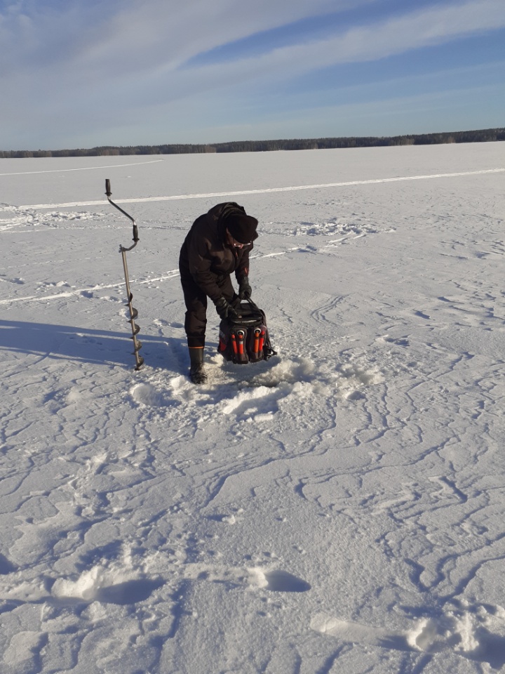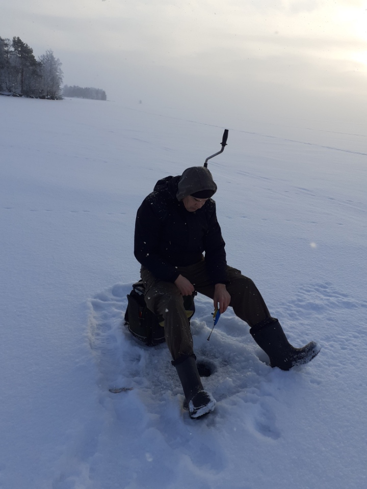 Eklundin ranta klo 9 – 12.30. Pakkasta -16…-8 astetta, jäätä n. 50cm, 15 pilkkijää.