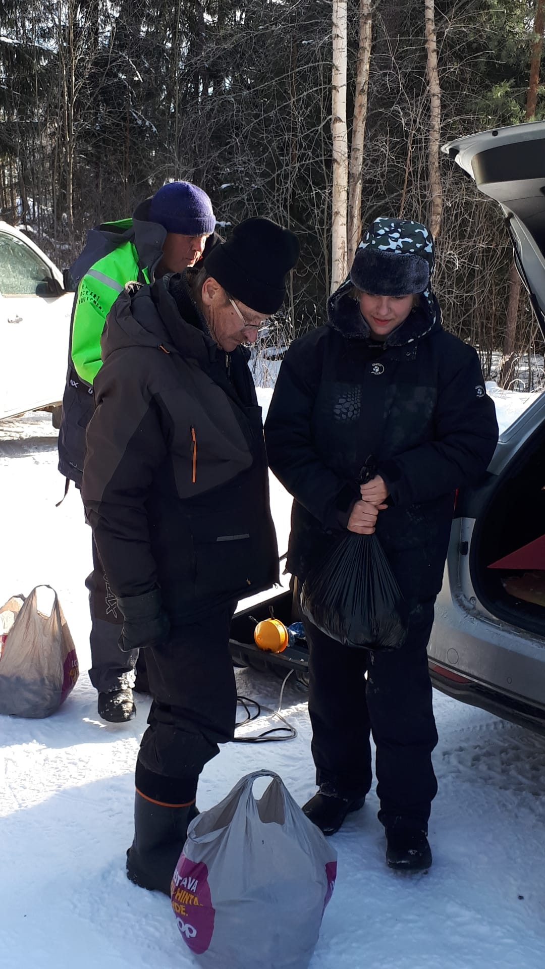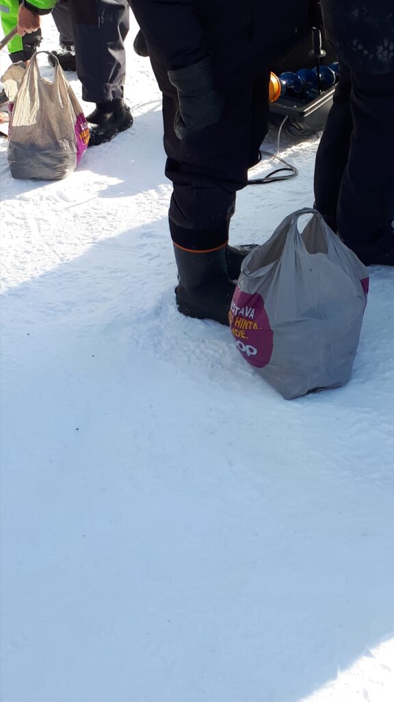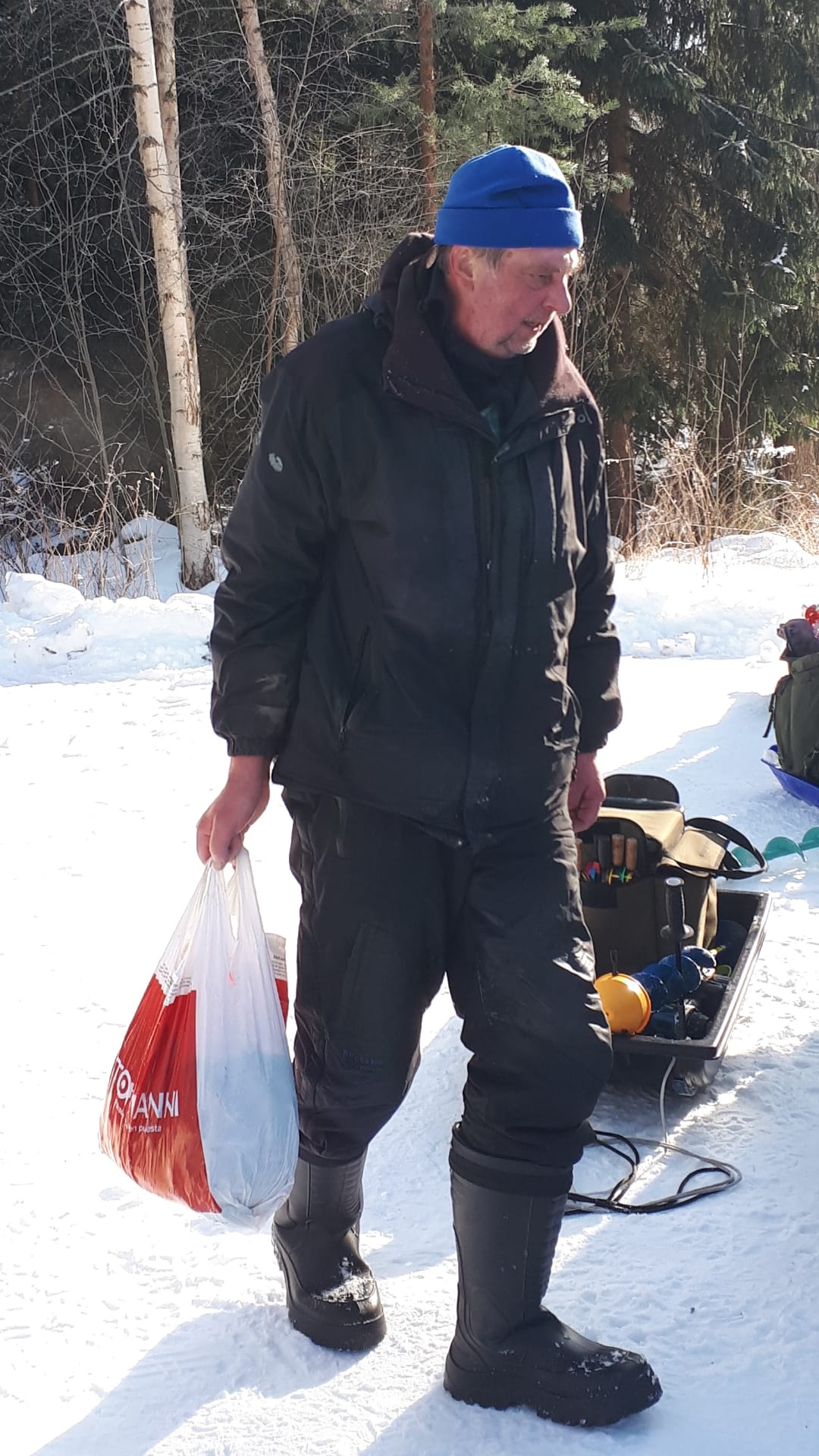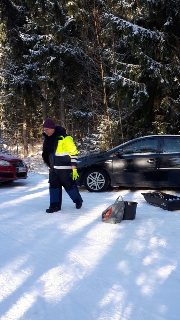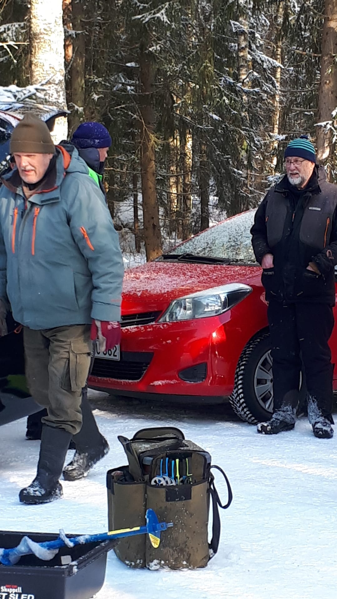 Eklundin ranta klo 9 – 12.30. Pakkasta -16…-8 astetta, jäätä n. 50cm, 15 pilkkijää.