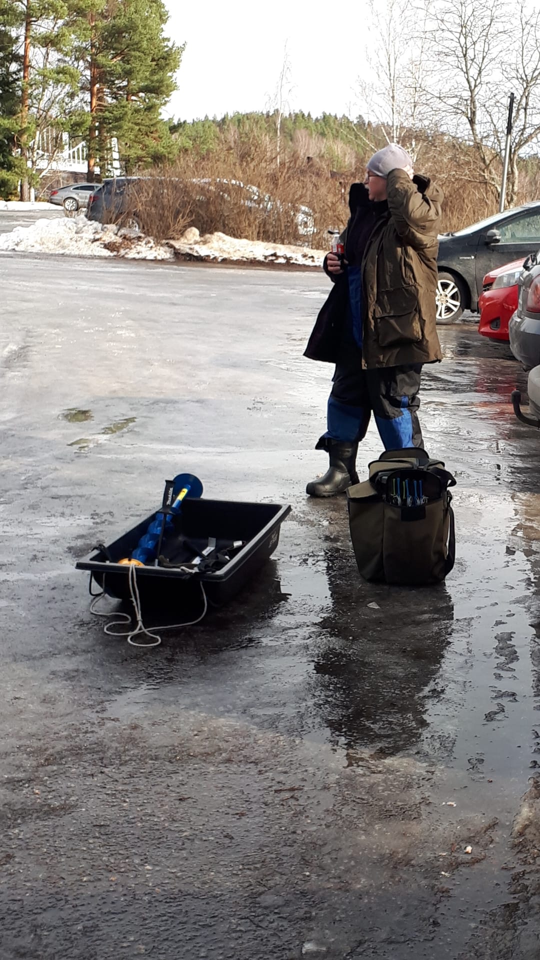 Siltakahvilan parkkipaikka, +1, jäätä 35 cm, lunta 5-15 cm.