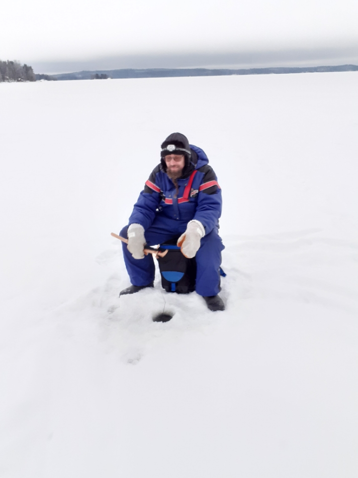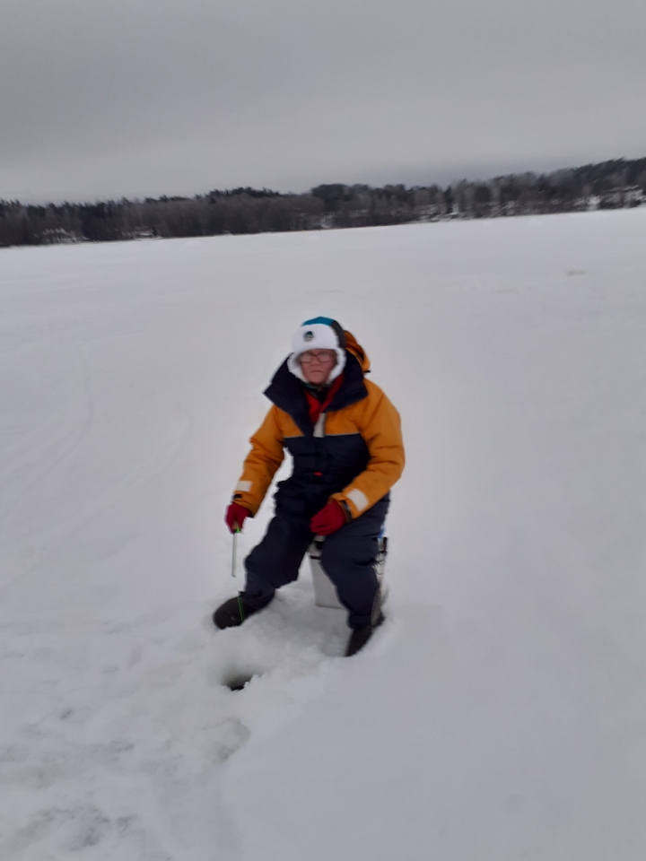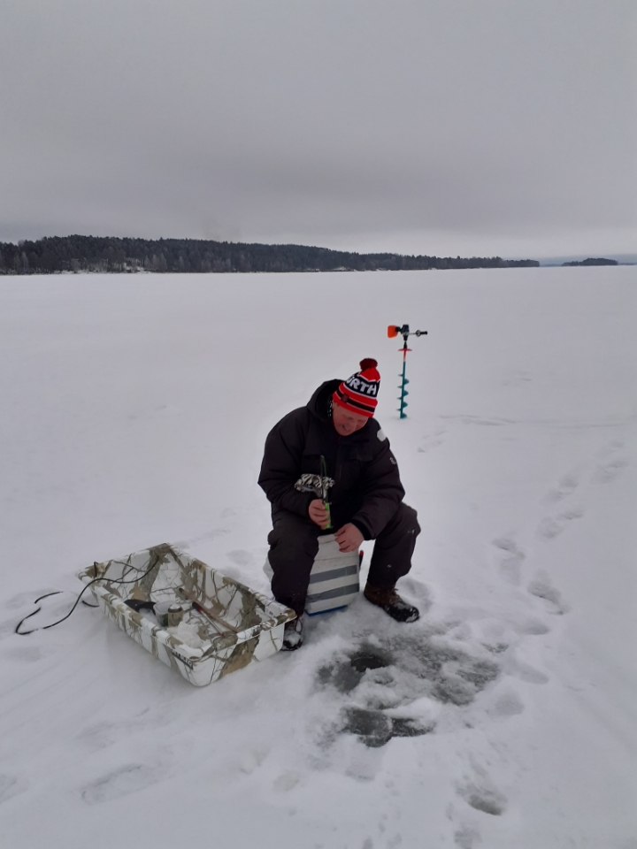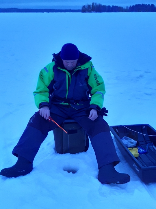 Eklundin ranta, Mälkiäinen klo 17 – 20. Jäätä 46 cm, -4 astetta pakkasta. 9 pilkkijää.